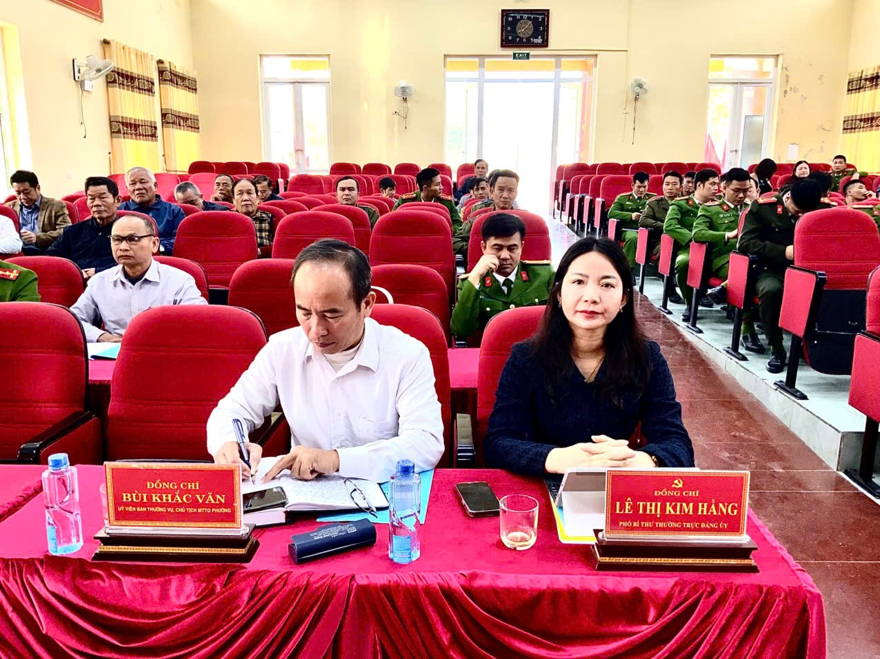 Đồng chí Hoàng Bá Trung - Phó Bí thư Đảng uỷ, Chủ tịch UBND phường; Nguyễn Quý Dương - Uỷ viên BTV Đảng uỷ, Trưởng Công an phường đồng chủ trì hội nghị.
