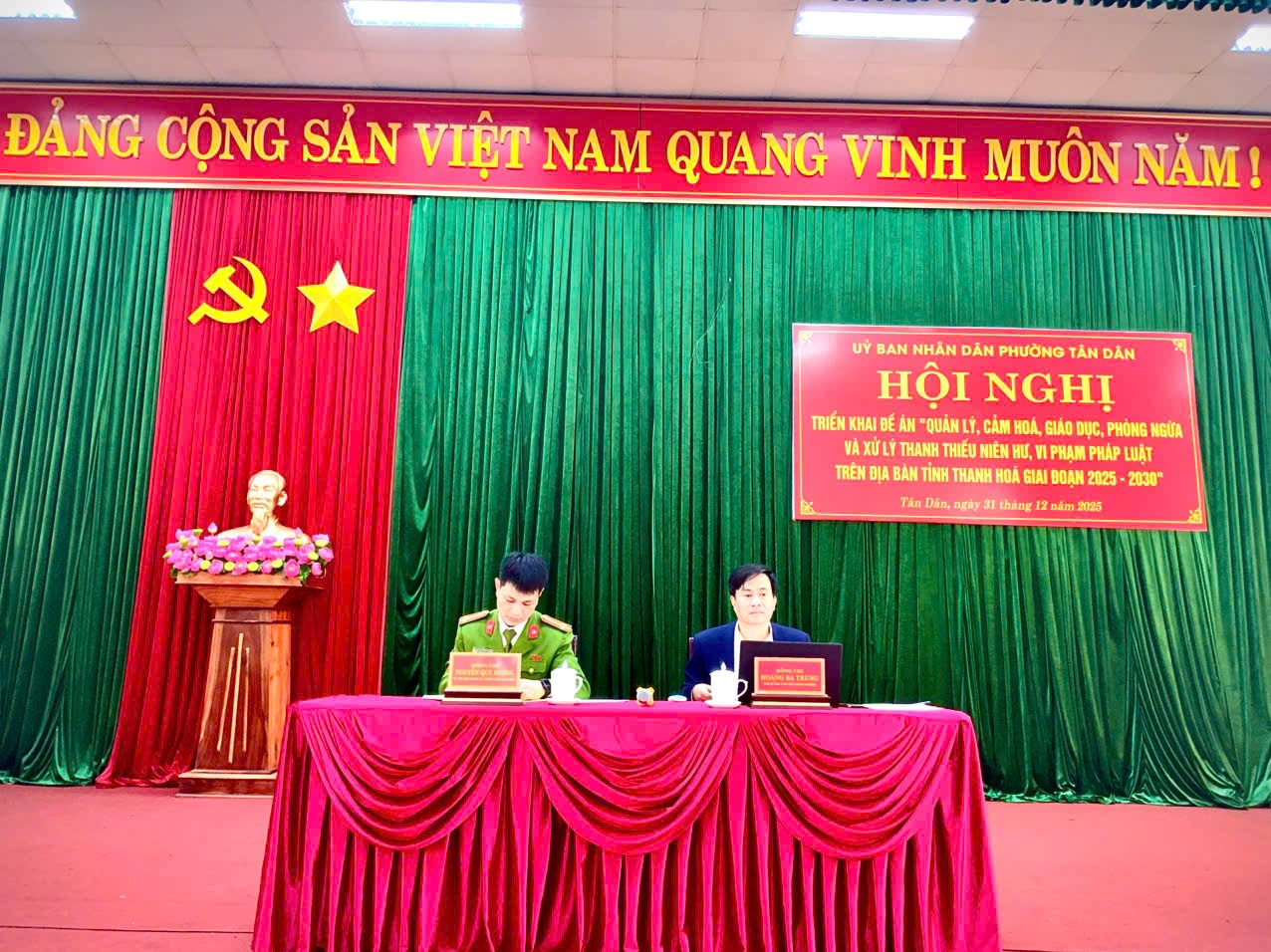 Hội nghị triển khai Đề án 3320 về “Quản lý, cảm hoá, giáo dục, phòng ngừa, xử lý thanh thiếu niên hư vi phạm pháp luật trên địa bàn tỉnh giai đoạn 2025 - 2030” tại phường Tân Dân