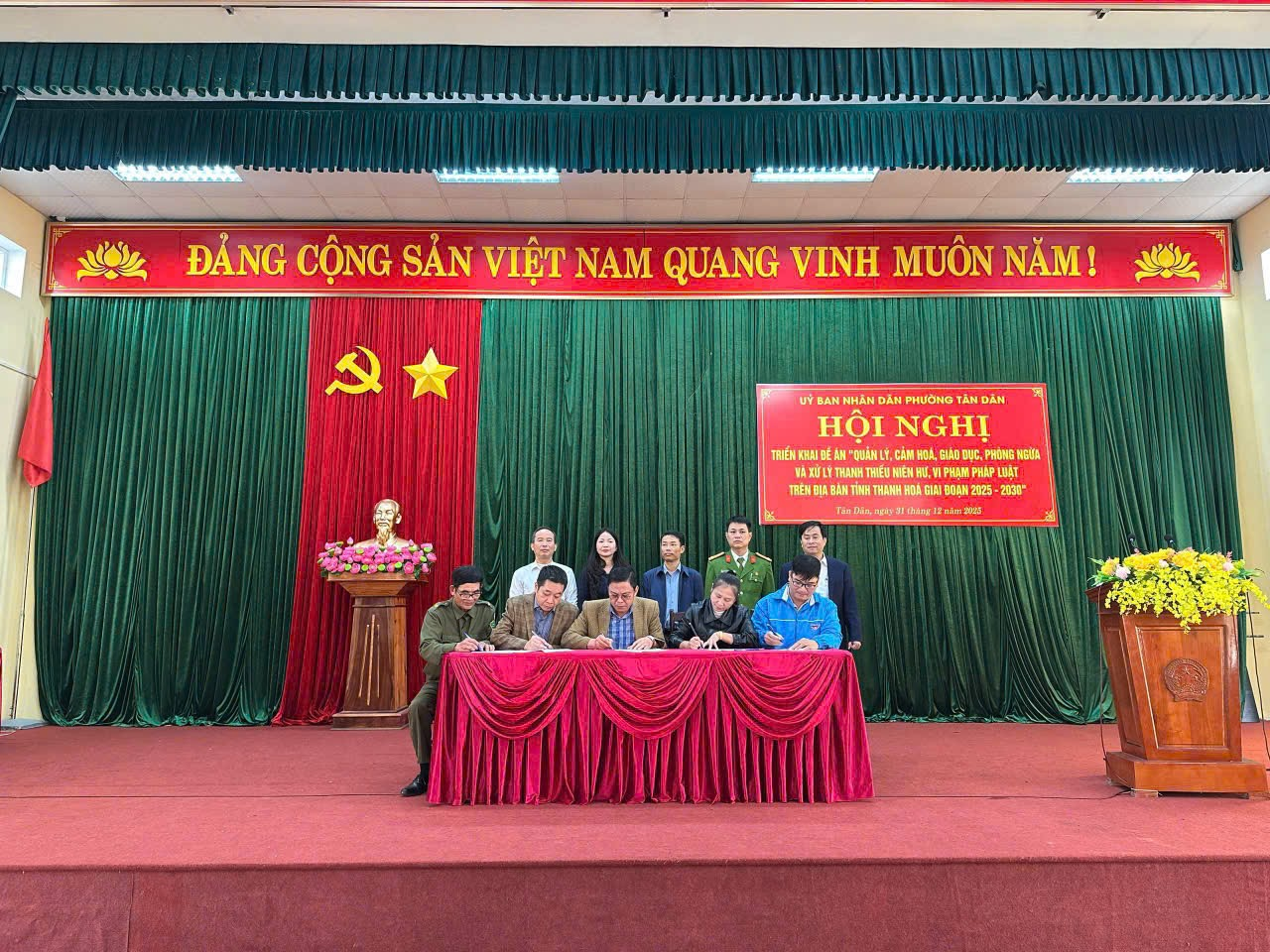 Tại hội nghị, các trường học, đoàn thể và tổ dân phố đã kí cam kết thực hiện tốt Đề án 3320 về “Quản lý, cảm hoá, giáo dục, phòng ngừa, xử lý thanh thiếu niên hư vi phạm pháp luật trên địa bàn tỉnh giai đoạn 2025 - 2030” tại phường Tân Dân, nhằm phát huy trách nhiệm trong công tác quản lý, giáo dục học sinh và thanh thiếu niên tại cộng đồng. Đây là cơ sở quan trọng thể hiện sự đồng thuận cao và trách nhiệm của toàn hệ thống chính trị.