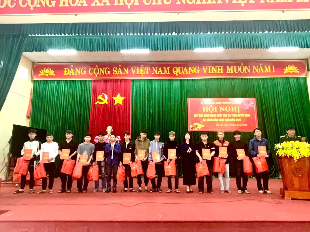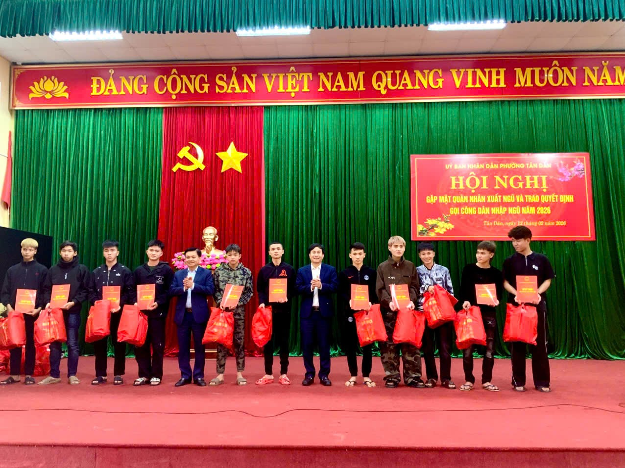 Hội nghị diễn ra trong không khí trang nghiêm, ấm áp, thể hiện sự quan tâm sâu sắc của cấp ủy, chính quyền và Nhân dân phường Tân Dân đối với nhiệm vụ quốc phòng - an ninh và thế hệ trẻ địa phương, quyết tâm hoàn thành thắng lợi nhiệm vụ tuyển quân năm 2026.