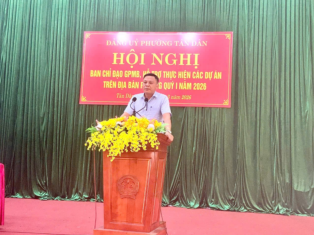 Thực hiện nhiệm vụ lãnh đạo, chỉ đạo công tác giải phóng mặt bằng (GPMB), bồi thường, hỗ trợ và tái định cư các dự án trên địa bàn, Chiều ngày 18/3, Ban Chỉ đạo GPMB phường Tân Dân đã tổ chức Hội nghị nhằm đánh giá tình hình, tiến độ thực hiện công tác GPMB các dự án trọng điểm; đồng thời thảo luận, đề ra các giải pháp đẩy nhanh tiến độ trong thời gian tới.