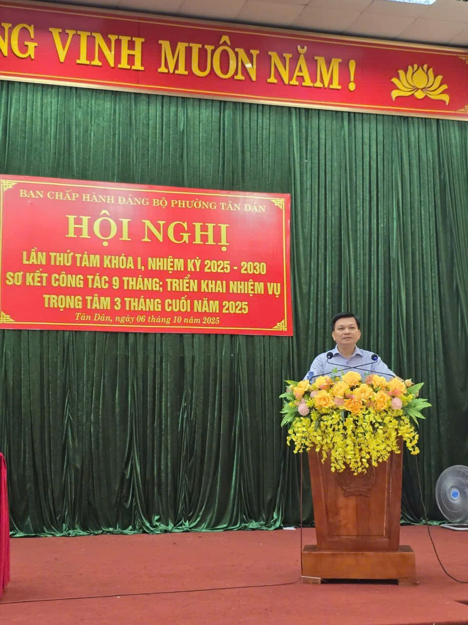 ĐẢNG UỶ PHƯỜNG TÂN DÂN TỔ CHỨC HỘI NGHỊ SƠ KẾT CÔNG TÁC XÂY DỰNG ĐẢNG 9 THÁNG, TRIỂN KHAI NHIỆM VỤ 3 THÁNG CUỐI NĂM 2025