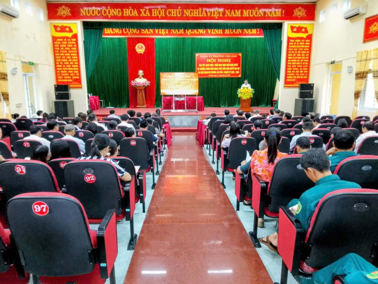 Sáng ngày 19 tháng 9 năm 2025, Đảng uỷ phường tân Dân tổ chức Hội nghị Học tập, quán triệt Nghị quyết Đại hội Đảng bộ phường Tân Dân lần thứ I, nhiệm kỳ 2025 -2030. Chủ trì hội nghị có các đồng chí: Trương Bá Duyên - Bí thư Đảng uỷ, Chủ tịch HĐND phường; Lê Thị Kim Hằng, Phó Bí thư Thường trực Đảng uỷ