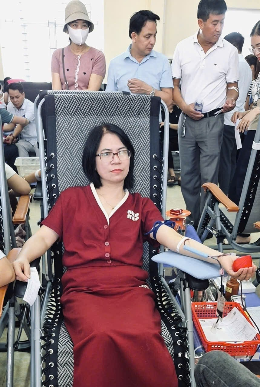 Đồng chí Hồ Thị Vân - Phó Chủ tịch UBND, Trưởng BCĐ hiến máu tình nguyện phường tham gia hiến máu