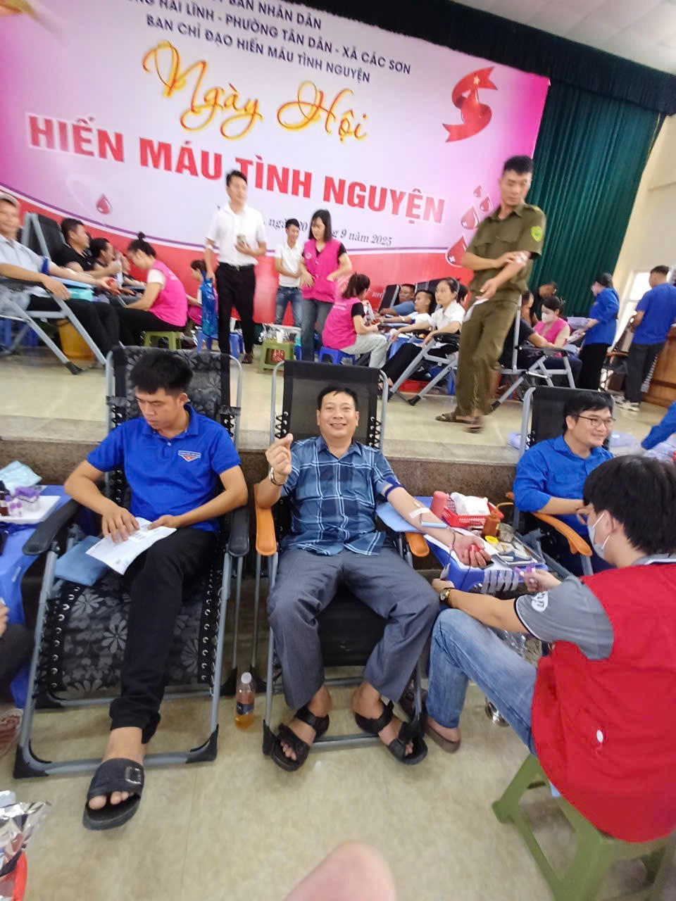 Có mặt từ sớm tại điểm hiến máu từ nguyện phường Hải Lĩnh, đồng chí Bí thư Đảng uỷ phường Tân Dân Trương Bá Duyên, cùng các đồng chí lãnh đạo UBND phường đã ân cần thăm hỏi, động viên và gửi lời cảm ơn sâu sắc tới các tình nguyện viên, cán bộ, đảng viên và nhân dân đã tích cực tham gia hiến máu. Đồng chí khẳng định: “ mỗi giọt máu cho đi là một cuộc đời ở lại. Đây là nghĩa cử cao đẹp, thể hiện tinh thần nhân văn, trách nhiệm cộng đồng của mỗi người dân”. Không khí tại điểm khiến máu diễn ra sôi nổi, ấm áp tình người.