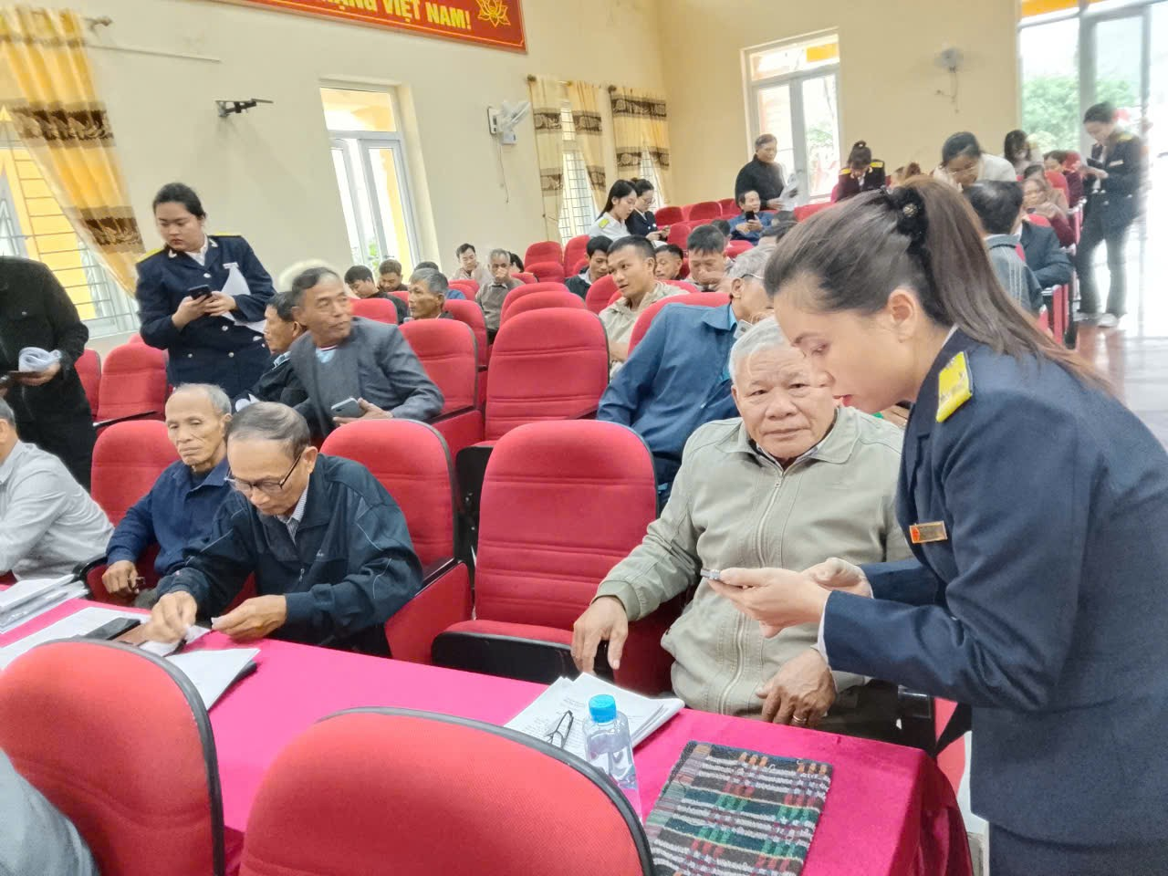 Tại hội nghị, cán bộ thuế đã hướng dẫn cụ thể: Cách tải, cài đặt và đăng nhập ứng dụng eTax Mobile; Cách tra cứu nghĩa vụ thuế và nộp thuế trực tuyến bằng điện thoại thông minh; Hướng dẫn quét mã QR để thanh toán nhanh, an toàn;Trực tiếp hỗ trợ người dân thao tác thực hành tại chỗ, giải đáp các vướng mắc. Không khí buổi tập huấn diễn ra sôi nổi, thiết thực. Nhiều người dân lớn tuổi được cán bộ thuế tận tình hướng dẫn từng bước, giúp việc tiếp cận công nghệ trở nên gần gũi, dễ hiểu và hiệu quả.