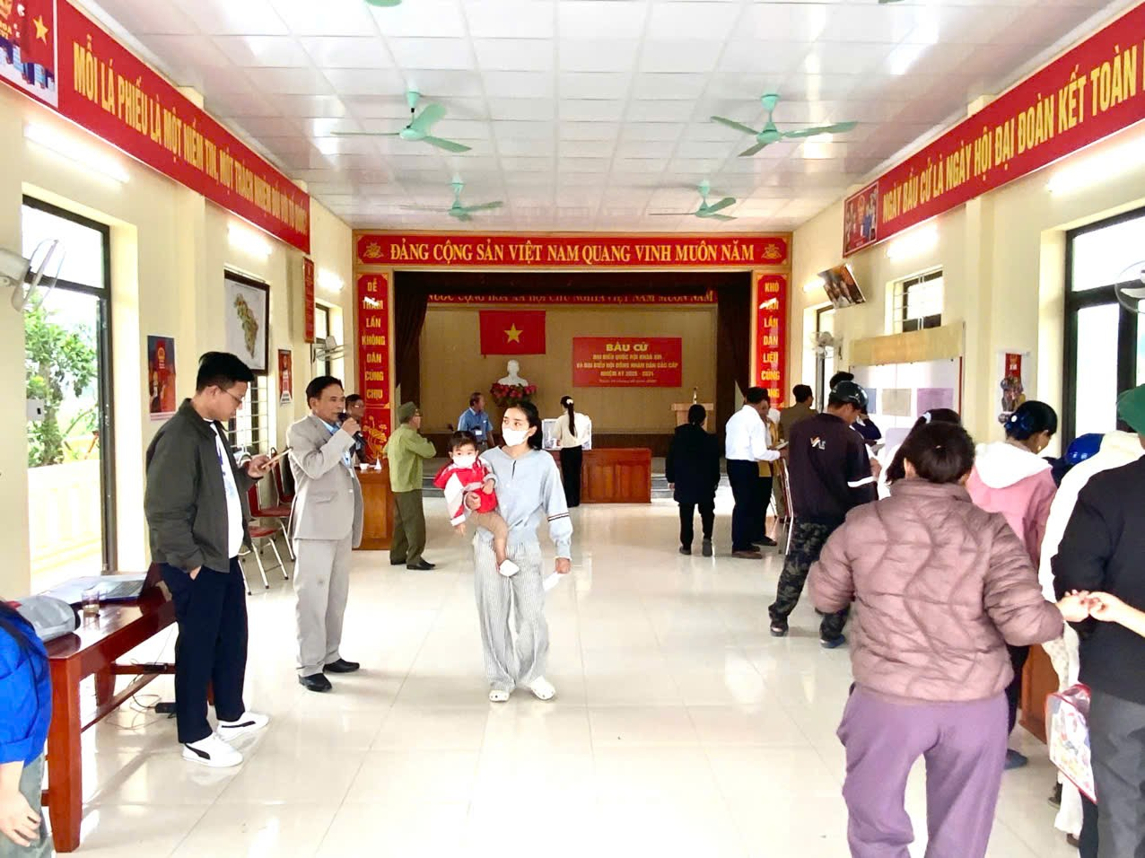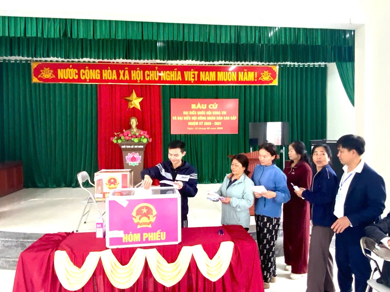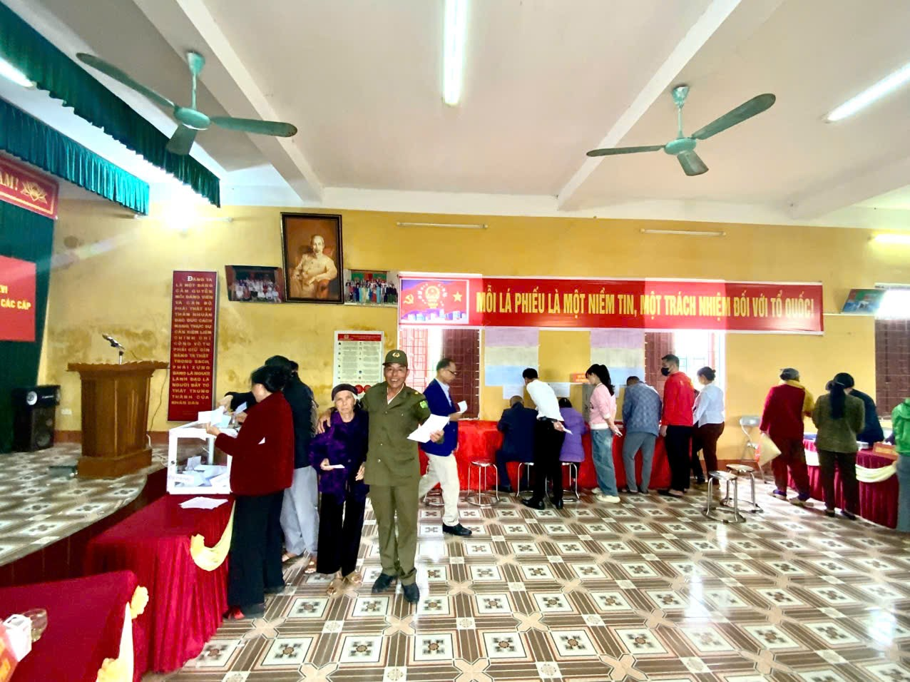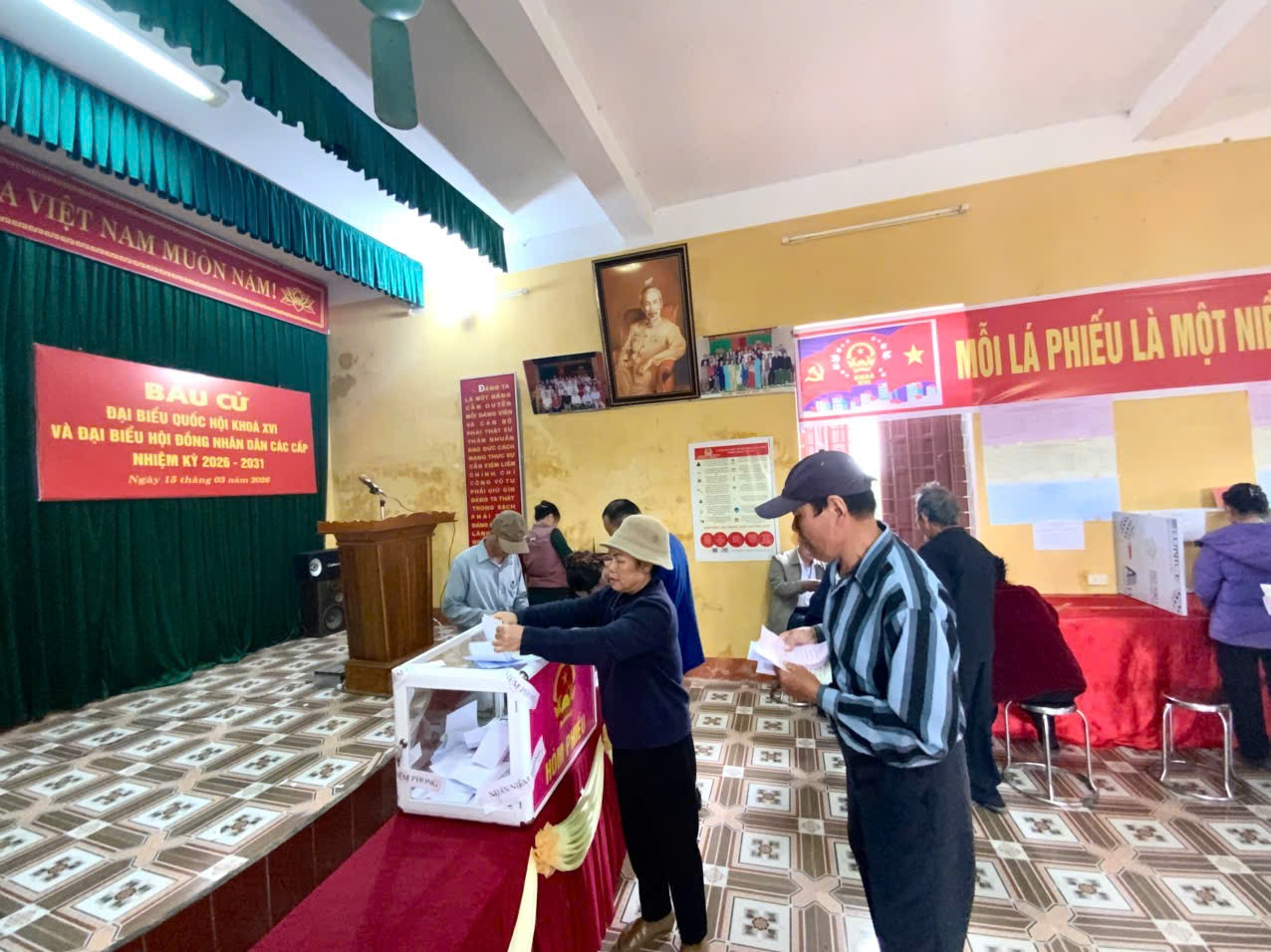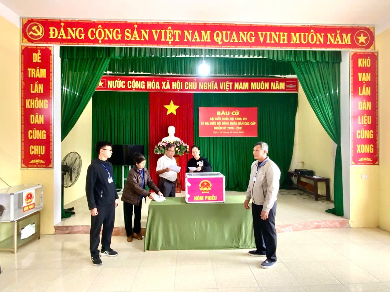 Không khí ngày bầu cử diễn ra sôi nổi, trật tự và an toàn. Cử tri chấp hành nghiêm các quy định tại khu vực bỏ phiếu. Nhiều cử tri cao tuổi, người khuyết tật được các tổ bầu cử và lực lượng đoàn thể hỗ trợ, hướng dẫn tận tình để việc bỏ phiếu diễn ra thuận lợi.