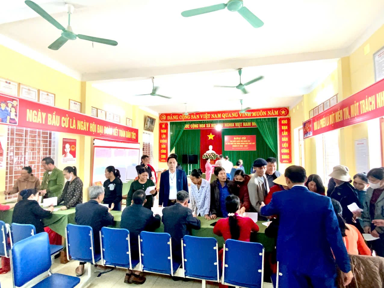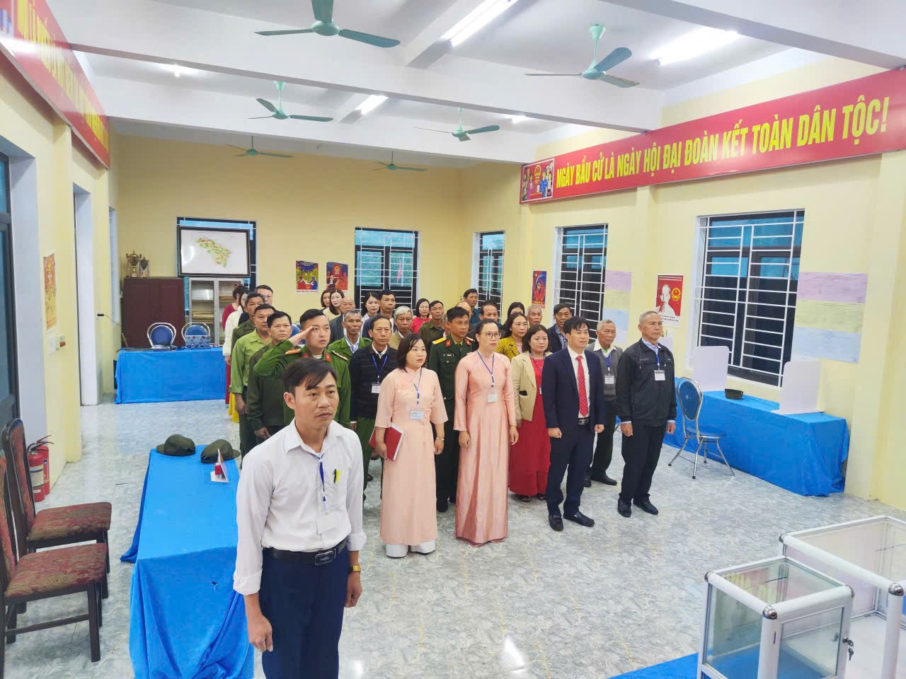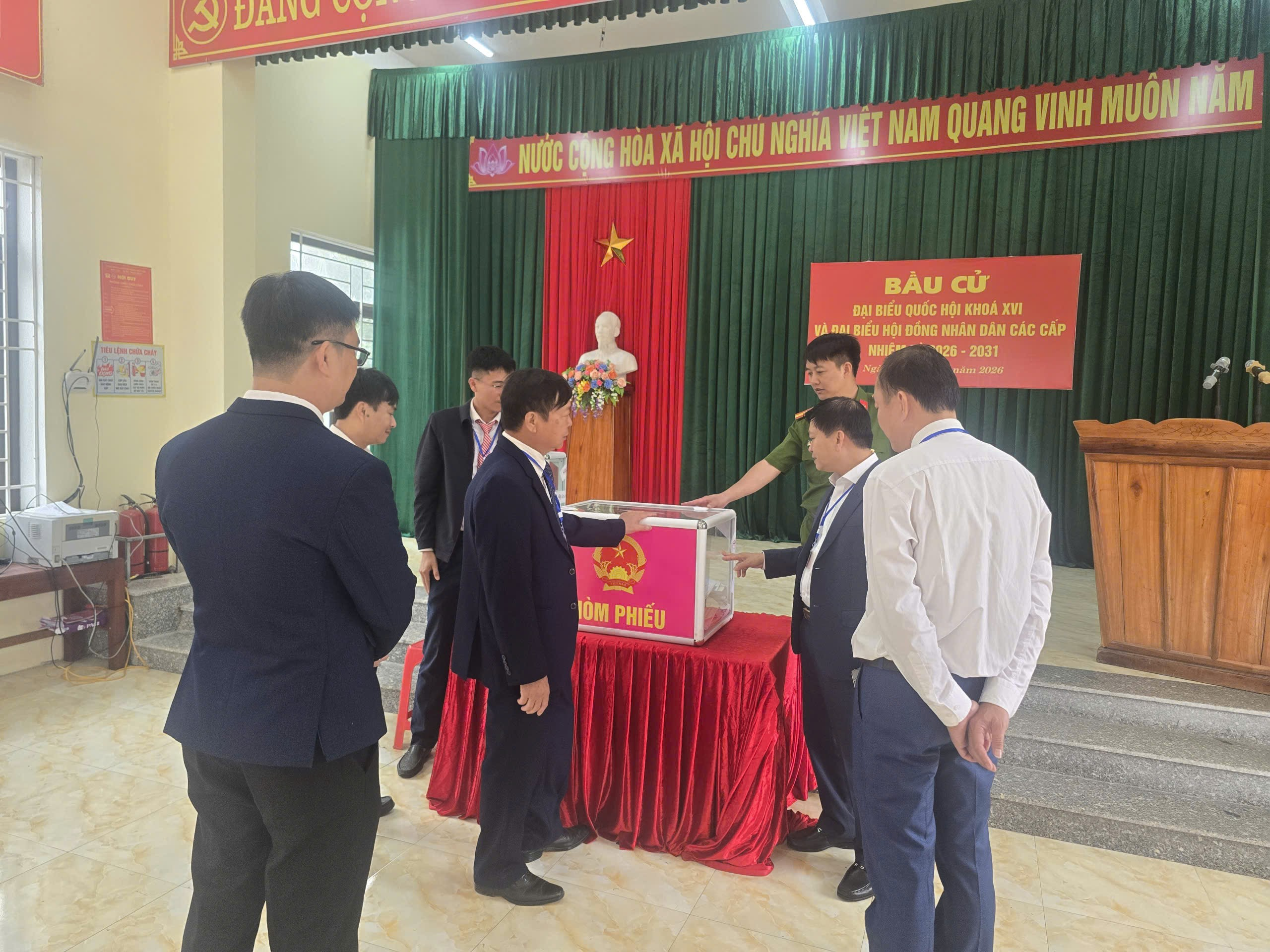 Công tác chuẩn bị cho ngày bầu cử được triển khai chu đáo. Các khu vực bỏ phiếu được trang trí trang nghiêm, đúng quy định; cơ sở vật chất, hòm phiếu và các tài liệu phục vụ bầu cử được chuẩn bị đầy đủ, tạo điều kiện thuận lợi để cử tri đến thực hiện quyền bầu cử.