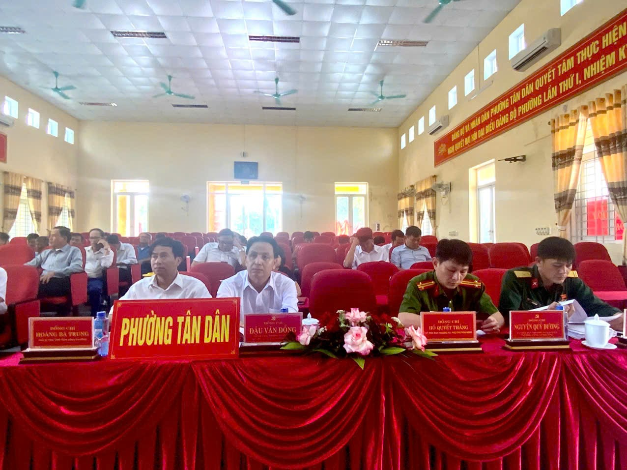 Tại điểm cầu phường Tân Dân có đồng chí Trương Bá Duyên - Bí thư Đảng uỷ, Chủ tịch HĐND phường, Trưởng Ban chỉ đạo bầu cử phường chủ trì. Tham dự hội nghị có đồng chí Lê Thị Kim Hằng - Phó Bí Thư Thường trực Đảng uỷ, Phó Trưởng Ban chỉ đạo bầu cử phường; đồng chí Hoàng Bá Trung - Phó Bí thư Đảng uỷ, Chủ tịch UBND phường, Phó Trưởng Ban Thường trực Ban chỉ đạo, Chủ tịch UBBC phường; Các đồng chí Ủy viên BTV Đảng ủy, thành viên Ban chỉ đạo Bầu cử, thành viên Ủy ban bầu cử phường; các đồng chí Thường trực HĐND, UBND, UB MTTQ phường; lãnh đạo các phòng, ban, đơn vị và Bí thư chi bộ, Tổ trưởng Tổ dân phố, Trưởng Ban công tác mặt trận.