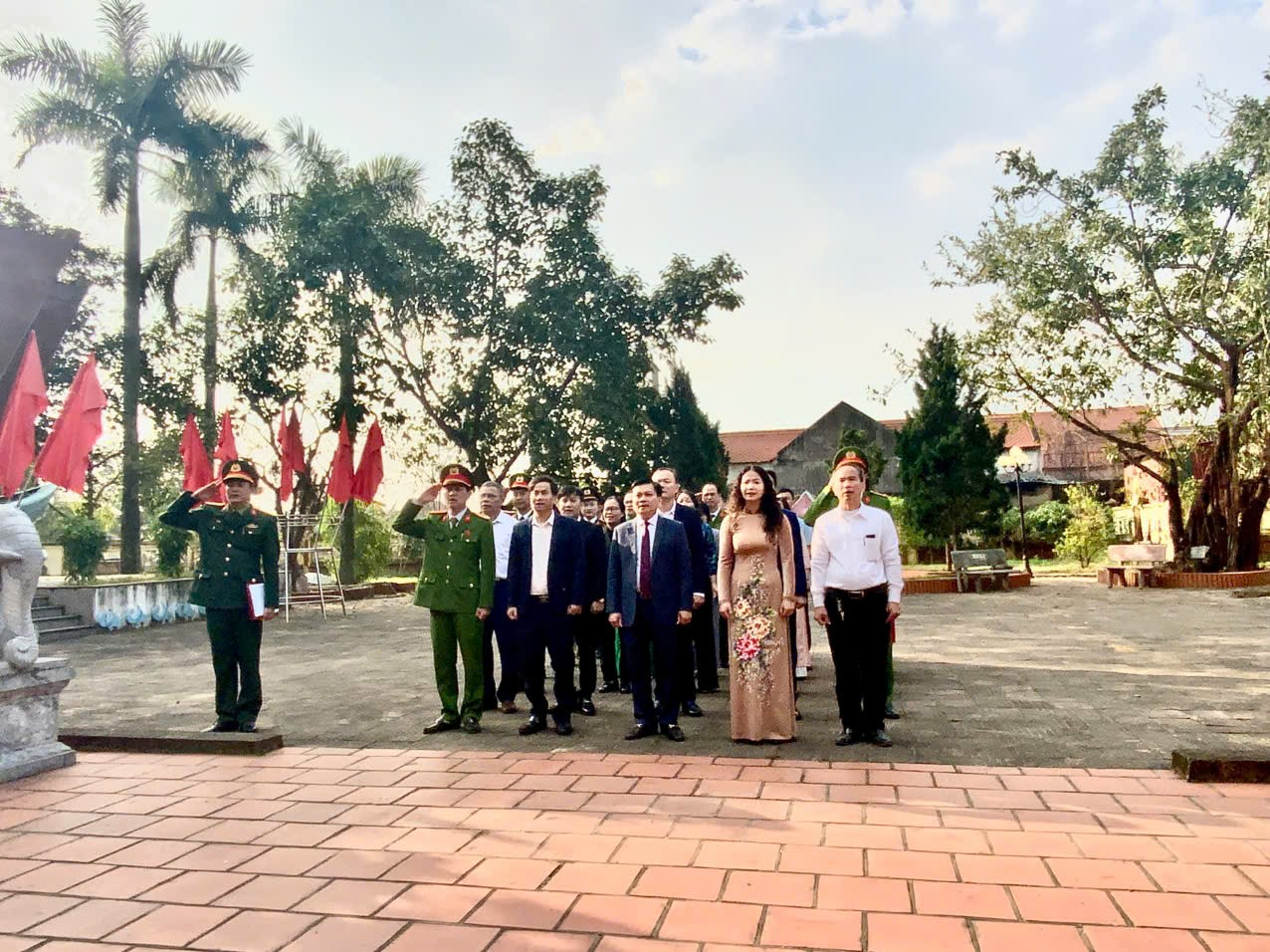 Tiếp đó, Đoàn đại biểu đến dâng hoa, dâng hương tại Khu di tích lịch sử cách mạng Đảng bộ phường, trong không khí trang nghiêm, thành kính đoàn đã dâng hương tưởng nhớ Chủ tịch Hồ Chí Minh vĩ đại, bày tỏ lòng biết ơn sâu sắc đối với công lao của các thế hệ đảng viên tiền bối, những người đã đặt nền móng xây dựng Chi bộ Đảng đầu tiên, vun đắp phong trào cách mạng tại địa phương, đồng thời khẳng định vai trò tiên phong, lãnh đạo của Đảng trong suốt chặng đường dựng xây và phát triển quê hương.
