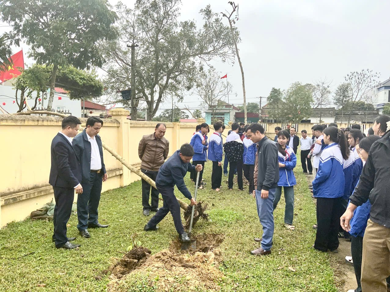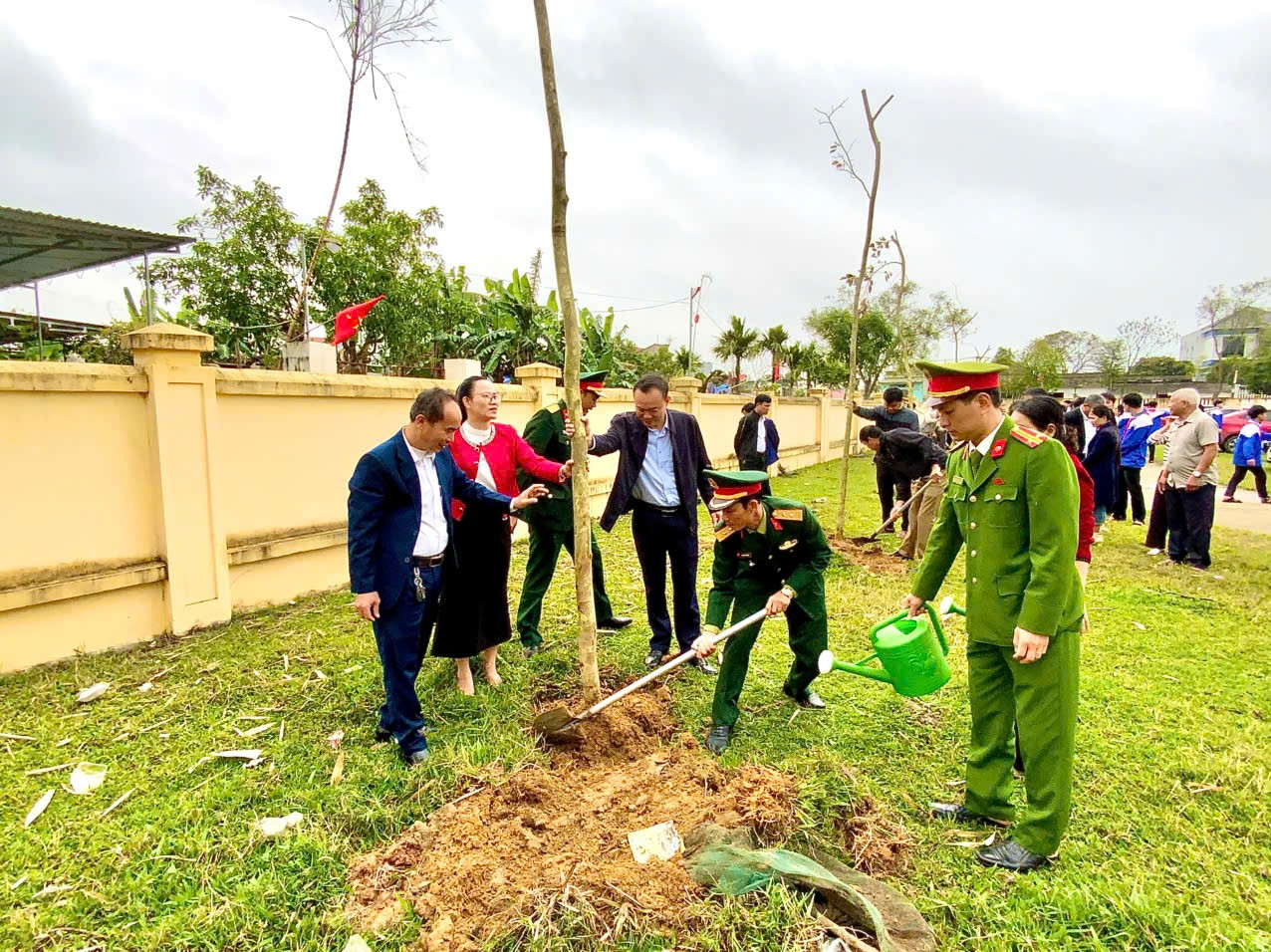Kết thúc phần nghi lễ, các đồng chí lãnh đạo phường cùng toàn thể đại biểu, Nhân dân và các em học sinh đã tham gia trồng cây tại khu vực Sân vận động xã Ngọc Lĩnh cũ. Trong không khí phấn khởi của những ngày đầu xuân năm mới, các lực lượng đã tích cực tham gia đào hố, trồng cây, vun gốc, tưới nước, bảo đảm đúng kỹ thuật, thể hiện tinh thần trách nhiệm và quyết tâm thực hiện thắng lợi kế hoạch đề ra.