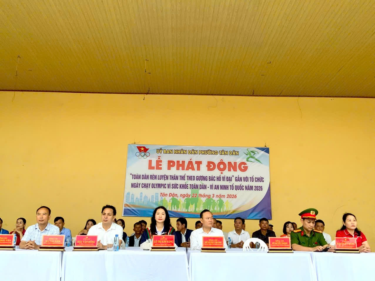 Sáng ngày 22/3/2026, tại Sân vận động xã Ngọc Lĩnh cũ (Tổ dân phố 14, phường Tân Dân), Ủy ban nhân dân phường Tân Dân đã long trọng tổ chức Lễ phát động “Toàn dân rèn luyện thân thể theo gương Bác Hồ vĩ đại” gắn với Ngày chạy Olympic “Vì sức khỏe toàn dân - Vì an ninh Tổ quốc” năm 2026.